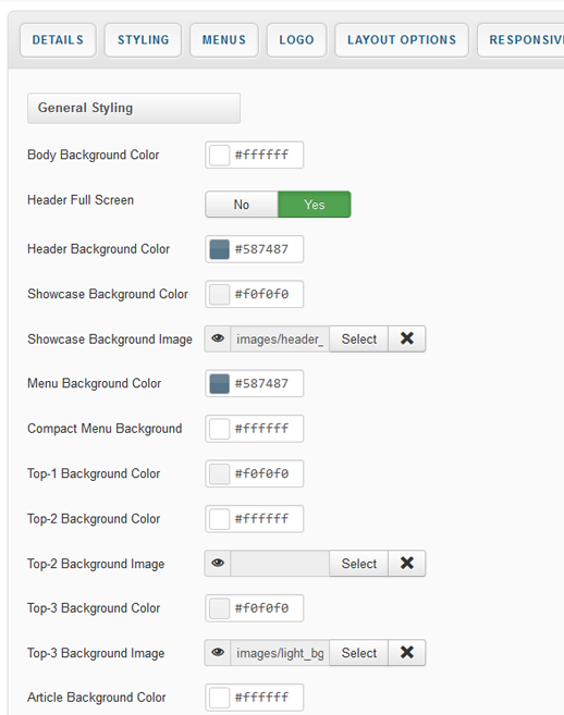 Your template parameters can be access directly from your Template Manager giving you access to a host of features including a selection of template styles, some colour choosers to help customise your template headers and links, a number of layout options and easy to use logo settings.